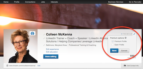 You may want people outside of your network to see your full profile. LinkedIn now gives you the option to make your profile “open” so that every LinkedIn member can see your full profile and reach out to your for free. This is significant for people in a job search, business development and sales.